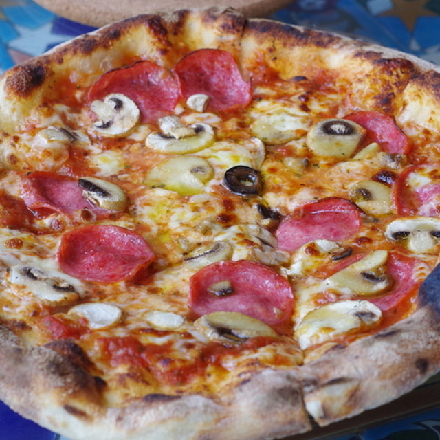 ピザキングのピザは「ナン」に似た生地を使っていて、もちもちとした食感が味わえます。